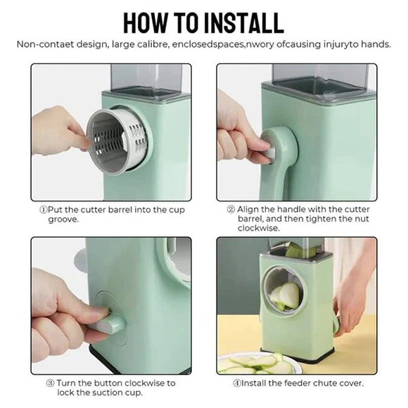 The Multifunctional Drum Vegetable Slicer Spiralizer Cutter Rotary Vegetable Chopper is a versatile kitchen tool that can help you slice, chop, and spiralize vegetables with ease. It features a rotating drum with different blades that can be used for different tasks, making it a multi-functional kitchen gadget. The slicer is perfect for those who want to make healthy and delicious vegetable salads, pasta dishes, or spiralized vegetables. The compact design of the slicer makes it easy to store in your kitchen, and the blades are made of high-quality materials that are durable and long-lasting. Using the slicer is very simple. All you need to do is attach the drum and blade of your choice, and then turn the handle to start slicing or spiralizing your vegetables. The slicer is also easy to clean and can be disassembled for thorough cleaning. Overall, the Multifunctional Drum Vegetable Slicer Spiralizer Cutter Rotary Vegetable Chopper is a great kitchen tool that can save you time and effort in the kitchen. It is perfect for those who want to eat healthy and delicious meals without spending a lot of time preparing them.
