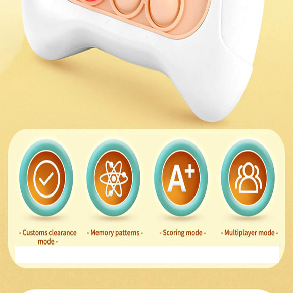Discover endless fun and satisfaction with our Pop It Fidget Sensory Toy. This captivating toy features rows of vibrant silicone bubbles that are perfect for pressing and popping, offering a delightful tactile feedback and an irresistible popping sound. Kids will be engrossed for hours on end, indulging in a soothing and entertaining experience Helps in Relieving Stress: But it doesn't stop there. Our fidget toy is not only a source of amusement but also a powerful stress relief tool. Designed to help alleviate anxiety, reduce stress, and promote relaxation, it's an invaluable aid for children who struggle with emotions or sensory overload. Watch as your child finds comfort and tranquility, thanks to this extraordinary toy. Growth & Educational Benefits: Our Pop It Fidget Sensory Toy offers more than just sensory benefits; it nurtures cognitive development and enhances fine motor skills. Through play, children can strengthen their hand-eye coordination, logical thinking, and problem-solving abilities, all while having a blast. Portable & Durable: Not only is it fun and therapeutic, but it's also incredibly portable and durable. The lightweight and compact design allow for on-the-go fun, making it ideal for school, car rides, or any situation where a little sensory support is needed. Toss it in a backpack, purse, or pocket, and you're ready to embark on endless popping adventures wherever you go.- The Quick Push Game Console Fidget Stress Relieving Toys are the perfect way to relieve anxiety and stress throughout the day. With their unique burst bubble mechanism and dynamic music, these toys provide a satisfying tactile experience and aural enjoyment with a variety of game modes, so come and experience them!